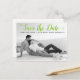 Modern lime green script wedding Save the Date photo postcard. This contemporary typography Save the Date design features a black and white photo of the couple and the text "Save the Date" in a modern script font.