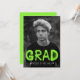 Urban, trendy photo graduation party invites featuring the graduate's photo with "Grad" in a lime green, spray paint typography style. Personalize the front by adding the graduate's name, school name, and graduation year. The modern graduation announcement reverses to feature your graduation party details in black against a lime green background or color of your choice.
