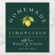 Pretty watercolor lemon and leaves, limoncello beverage label. Designed to match our Citrus Orchard Collection. Background colour, shown in emerald green, can be customised.