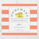 Rustic watercolor lemons and leaves, modern limoncello beverage label. Labels feature, chic peach and white stripe pattern background.