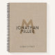 Shown with a custom name and monogram initial on the front in modern typography, this personalised business notebook is designed with custom text. You can customise by changing the text using the fields provided, or use the "message" button to contact the designer for help.