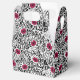 This design features a pattern made up of pink lips and abstract black and white pattern.
