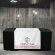 A custom printed white and pink tapestry that can be customise to a table runner for your pop up shop. Customise the table runner with your business modern text, business logo and social media icons and create your own table runner for your craft shows and vendor events. Perfect for trade shows, pop up shops, expos etc.