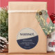 Modern design in dusty blue/beige colours. Select the ''Edit using design tool'' to customise text size/colour, logo size, or element placement. If you select small stickers please adjust the text size properly.
