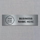 Modern name tag with your company or organisation's logo against a silver faux metallic background. Add your business name in simple typography.