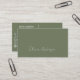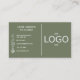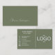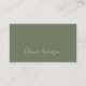 Sage modern minimalistic logo business card with white text. The front has just the owners name in a white script font like a handwritten signature on a sage green background. The back has the essentials on the left side like; name, Company or title, street address, phone, e-mail, mobile and webside. On the right is your logo, easy to change to yours.