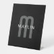 Modern Looking Monogrammed Name | Black Grey White Pedestal Sign