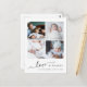 This modern timeless multiple photo baby shower thank you card is ideal for anyone who wants to thank their guests for attending their special day. The modern, elegant design has a minimalist style and features four customisable photos placed in the collage and whimsical elegant typography for the header: love and thanks. On the bottom there is a baby's name and a date of birth. This simple design will look beautiful with retro black and white photos but also colour ones! On the reverse, there is your customisable thank-you message. Use the "customise" button to replace photos and edit text.