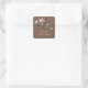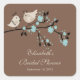 Cute love birds Bridal Shower square sticker featuring bride & groom birds sitting on a branch with turquoise blue flowers set on a chocolate brown background. Great for bridal shower favour tags & envelope seals! Customise with your bridal shower information and you're all set to go! Matching invitations and postage stamps available in our shop www.celebrateitinvites.com.