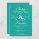 Start off your modern elegant baby shower off right with our trendy white love birds baby shower invitation featuring a stylish pair of chic love birds with a heart sitting on a flourish scroll branch set on a turquoise blue background for a baby boy baby shower, girl baby shower or a gender neutral baby shower. Just customise our invitation with your baby shower information and you're all set to go. Available in our shop in a large selection of popular & trendy colours.