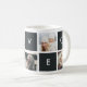 Customise this classic white mug with five of your favourite Instagram or square photos in a gridded collage layout. Add treasured photos of family, children, or your wedding or engagement to create a sweet keepsake and a one of a kind Valentine's Day gift. Photos are interspersed with rich charcoal off-black squares spelling out LOVE, with a white heart illustration in the last square.