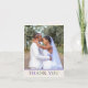 Stylish wedding thank you card done in ivory, with colourful graphic text reading THANK YOU, under a custom wedding picture. Personalise the photo and text inside, to suit your wedding needs. Matching products are available.