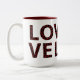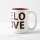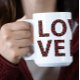 Modern LOVE mug with red hearts in the letters for Valentine's Day. This would be a perfect gift to give to someone to remind them how you feel about them, and it's also good for weddings or any time that you want to spread a little affection.