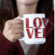 Modern LOVE mug with red roses in the letters for Valentine's Day. This would be a perfect gift to give to someone to remind them how you feel about them, and it's also good for weddings or any time that you want to spread a little affection.