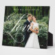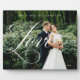 Special personalized newlywed wedding photo plaque to display your own special wedding photo memory. Our design features a full photo design with your last name displayed along the top of the plaque. The word "Love" is designed in a beautiful handwritten white script style that is overlaid over the wedding photo.