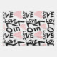 A modern take on love, featuring a scribbled black font and hand-drawn pale pink hearts, reminiscent of the famous "LOVE" sculpture from the 1970's.