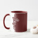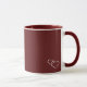 Celebrate love in style with this elegant two-tone mug, designed with a bold maroon and white colour scheme. One side features a modern script design of the word "Love" paired with customisable initials, making it a truly personal and heartfelt gift. The other side is accented with two simple, delicate white hearts in the corner, adding a touch of understated romance to the design. Perfect for couples or as a gift for anniversaries, Valentine’s Day, weddings, or special occasions, this mug combines sophistication with sentimentality.