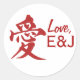 This Modern "Love" Stickers consist of the character "love" in Chinese in red glitter, and customisable initials.