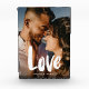 Sweet and simple keepsake for any couple or newlyweds, showcasing your favourite wedding or engagement photo with modern script calligraphy reading LOVE over your custom names and dark gradient to make the typography stand out.