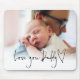 Modern Love You Daddy Script Name Informal Photo Overlay. A practical keepsake gift for fathers, simply replace the sample photo with your own which is above set typography Love You Daddy and heart motif..