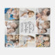 Custom photo blankets for grandparents are the perfect way to celebrate family love, and this personalised “Love You Grandma & Grandpa” blanket is a thoughtful gift that beautifully captures special memories. Featuring a clean, modern grid layout with nine photo spaces, this design allows you to showcase your favourite moments with grandkids in a heartwarming and elegant way. The soft white background, paired with stylish black script and a central heart graphic, gives the blanket a timeless and cosy look that complements any space. Ideal for birthdays, Grandparents Day, Christmas, or just to show appreciation, this grandparent photo collage blanket includes a customisable name area for a heartfelt message that adds a personal touch. Whether displayed in the living room or used daily for warmth, this keepsake blanket is a treasured reminder of the bond shared between grandparents and grandchildren. A meaningful and unique photo gift that brings joy and comfort with every use.