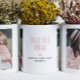 Elevate your mum's daily coffee routine with this cute, modern mug – a personalised masterpiece designed to warm her heart with every sip. This chic mug showcases two cherished photos capturing special moments, creating a unique and sentimental collage. The casual all-caps handwritten font boldly declares 'Love you Mum.' Add an extra layer of personalisation with a heartfelt message, turning this mug into a cherished keepsake. Designed with both style and sentimentality in mind, this mug is a daily reminder of the love you share. Whether it's a gift for Mother's Day, a birthday or Christmas, make every cup of tea a moment to treasure.