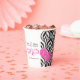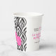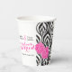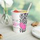 Personalise these modern luxe leaf and two pink carnations graphic wedding party paper cups with your own couple's wedding details. © Original art and design by Sarah Trett for www.mylittleedenweddings.com