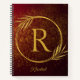 Modern Luxe Deep Red & Gold Custom Name & Initial Notebook