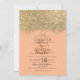 Modern Luxury Gold Coral Glitter Confetti Wedding Invitation