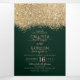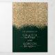 The elegant, glamourous, and modern wedding invitation and wedding party list is perfect for the contemporary and stylish engaged couple. It features a faux printed gold sparkly glitter confetti speckled colour block on top of a simple forest green background. The back displays the same glitter but a thicker panel above a special message from the bride and groom, which can be customised or deleted. This chic, luxury, and unique design will be a hit with all of your guests!