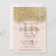 Modern Luxury Gold Pink Glitter Confetti Sweet 16 Invitation