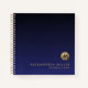Minimal Modern Luxurious Gold Brushed Metal Monogram Initlal Emblem Name Custom Text Navy Blue Gradient Template Graph Paper Notebook. Stylish elegant design that you can personalise with your monogram, name and title or text of your choice in classic typography lettering.