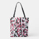 This tote bag features a fun colourful geometric design in trendy Viva Magenta, black, grey and white. The squares are coloured in a random pattern and you can edit the colours in the Design tool.