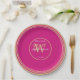 Modern Magenta + Gold Monogram Chic Wedding Paper Plate