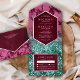 Modern Magenta Marble Teal Glitter Wedding All In One Invitation