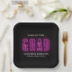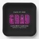 Modern graduation paper plates featuring "Grad" displayed in magenta neon lettering with a black background (or color of your choice). Personalize the neon graduation plates with the graduate's name, school name, and graduation year. The personalized graduation paper plates are perfect to use for both high school and college graduation parties!