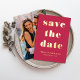 Personalised Modern Magenta Photo Save The Date Gold Foil Foil Invitation.
