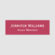 Create your own custom, personalised, durable, plastic, modern, professional, trendy, classy, magenta red and white, name ID badge tag, with choice of traditional safety pin back, or a quality magnetic backing that doesn't leave a tear in clothes / uniforms. You may also choose from a variety of shapes and an optional dry-erase finish. To customise, simply type in your full name and designation / title. While you personalise, you'll be able to see a preview throughout. Perfect for hospitality, healthcare, dental business, small businesses, corporate, schools, restaurants, churches, military, office, and for executives, professionals, consultants, self employed professionals, entrepreneurs, employees, staff, doctors, veterinarians, dentists, nurses, teachers, students.