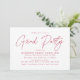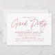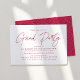 Fun and modern graduation party invites featuring "Grad Party" in a trendy magenta script with your graduation party details displayed below. The simple graduation party invite reverses to display a cute magenta and white dotted geometric pattern.