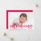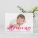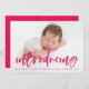 Modern photo birth announcement card featuring your baby's horizontal newborn photo with "introducing" displayed in a magenta brush script overlay. Personalize the front of the simple birth announcements with the baby's name and birth stats. The card reverses to display a solid magenta background with space for additional photos and text.