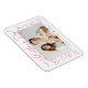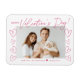 Modern Valentine's day magnet featuring "Happy Valentine's Day" in a trendy magenta script with hand-drawn hearts along the sides of the design on a white background. Your horizontal photo is displayed near the middle of the design. Personalize the Valentine's Day photo magnet by adding your name and the year in magenta lettering.