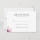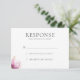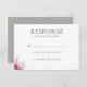 A wedding response card co-ordinating with our clean, elegant and modern wedding invitation, featuring a single pink watercolor magnolia flower on a crisp white background, and elegant dark grey text. The reverse is in solid grey.