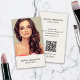 Create a professional and modern business card with a custom photo on the front and personalised details, plus a scannable QR code on the back for easy networking, and editable social media icons. Easily adjust fonts, colours, background, and layout to perfectly match your style. Ideal for makeup artist, hair stylist, Beauty Salon, and businesses looking to offer a thoughtful and professional presentation!