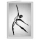 A lone, abstract human figure simply and elegantly stretches sideward through space, seemingly frozen for an instant in a modern dance pose.
