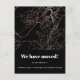 This modern rose gold and black map design we have moved moving announcement postcard features a bold design with chic retro type. This elegant change of address announcement postcard features a beautiful map print and news of your big move. The back of this basic new address announcement postcard features a custom editable message letting people know their new guest room is waiting for them, and includes your return address.