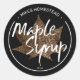Modern maple syrup label. Minimalist black and white product label with Copper maple leaf.