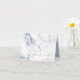 An abstract background reminiscent of glitter-veined marble in shades of dusty blue through steel blue and white is the backdrop for elegant script text and modern design layouts in the pieces of this beautiful wedding suite. The wedding 'thank you' card shown here features a dusty blue watercolor interior and marble exterior. Easily add your own 'thank you' message, names and wedding date using the provided template. Search ID816 to see other pieces and colour choices for this set.