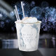 An abstract background reminiscent of glitter-veined marble in shades of dusty blue through steel blue and white is the backdrop for elegant script text and modern design layouts in the pieces of this beautiful wedding suite. The wedding paper cup shown here features centred text bordered by elegant marble. Easily add your own names and wedding date using the provided template. Search ID816 to see other pieces and colour choices for this set.