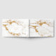 An abstract background reminiscent of glitter-veined marble in shades of gold is the backdrop for elegant script text and modern design layouts in the pieces of this beautiful wedding suite. The wedding Guest Book shown here features script text and elegant marble. Easily add your own names, wedding date and message using the provided template. Search ID816 to see other pieces and colour choices for this set.