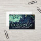 Modern marble effect abstract hair stylist business card in light teal and black. Edgy abstract modern style with bold sans serif typography contrasted and overlapping with a script signature.